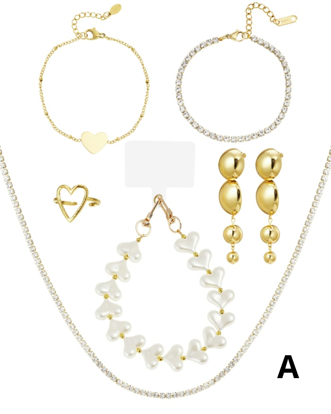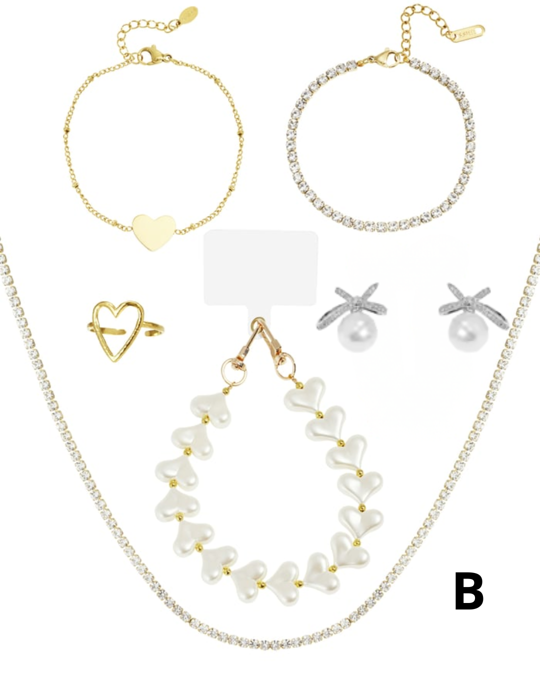 🤍 Option B – Silver Muse: designed for the silver lovers, featuring the same luxurious selection with an added touch of grace — pearl earrings in radiant silver.